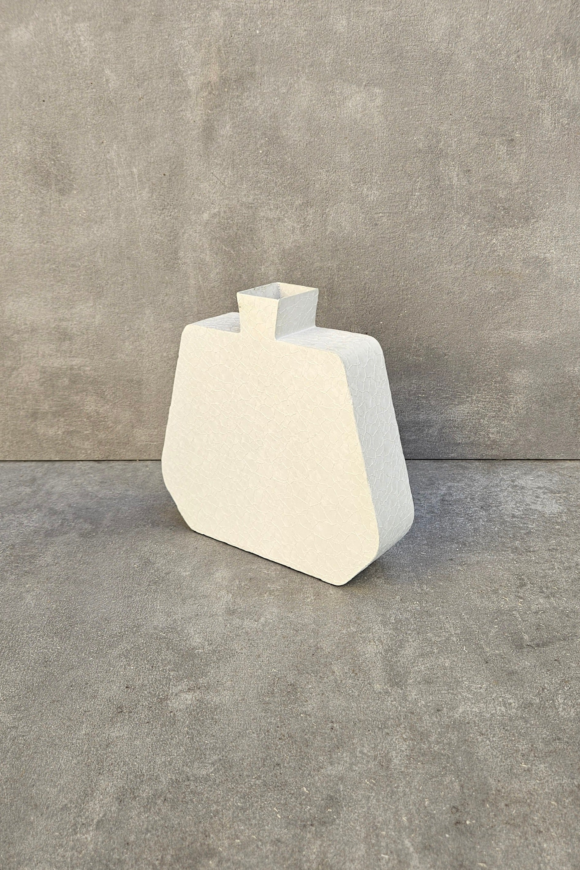 Die Designer-Vase von boi! überzeugt mit moderner Eleganz: Ihre eckige Form, strukturierte Metalloberfläche und das hellmatte Weiß machen sie zum stilvollen Deko-Objekt. Perfekt für einzelne Schnittblumen oder als Statement-Piece für dein Zuhause.