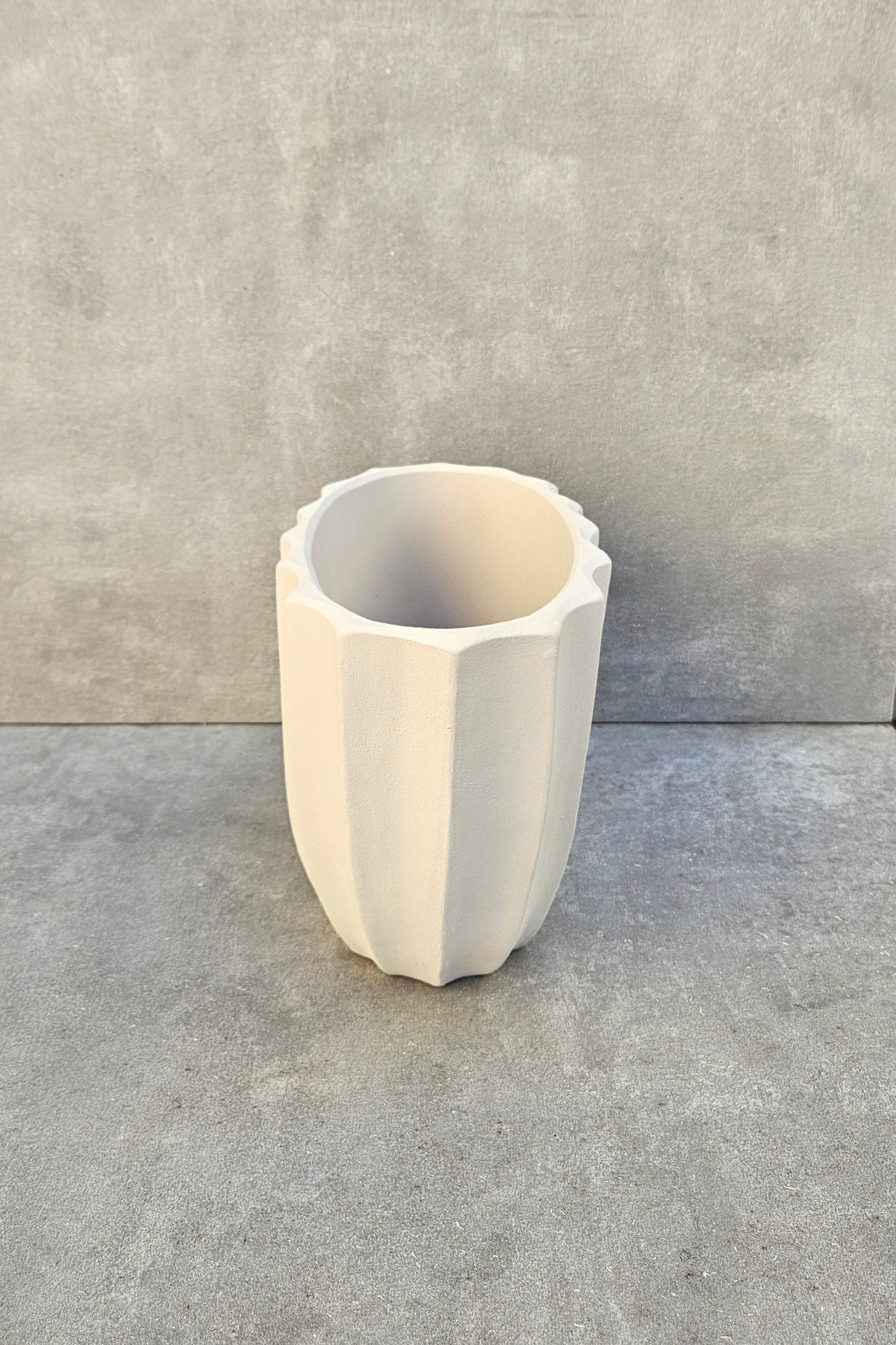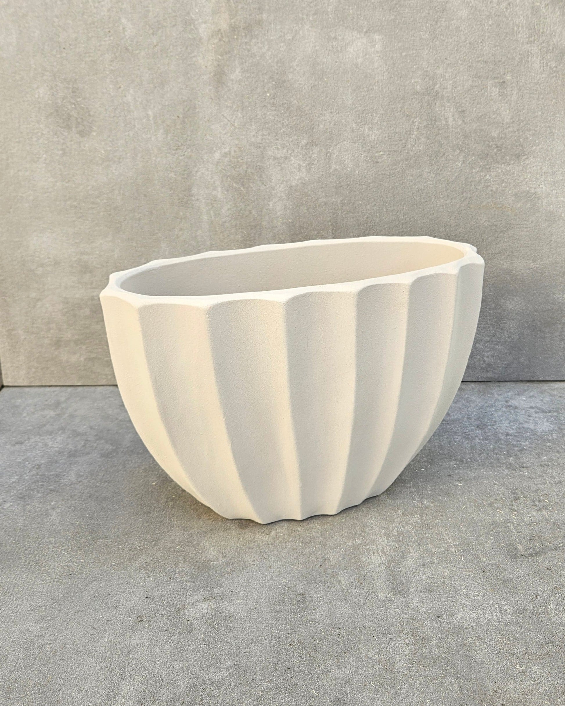 Beige Beton Vase – Boot Vase oval geriffelt in Beige matt