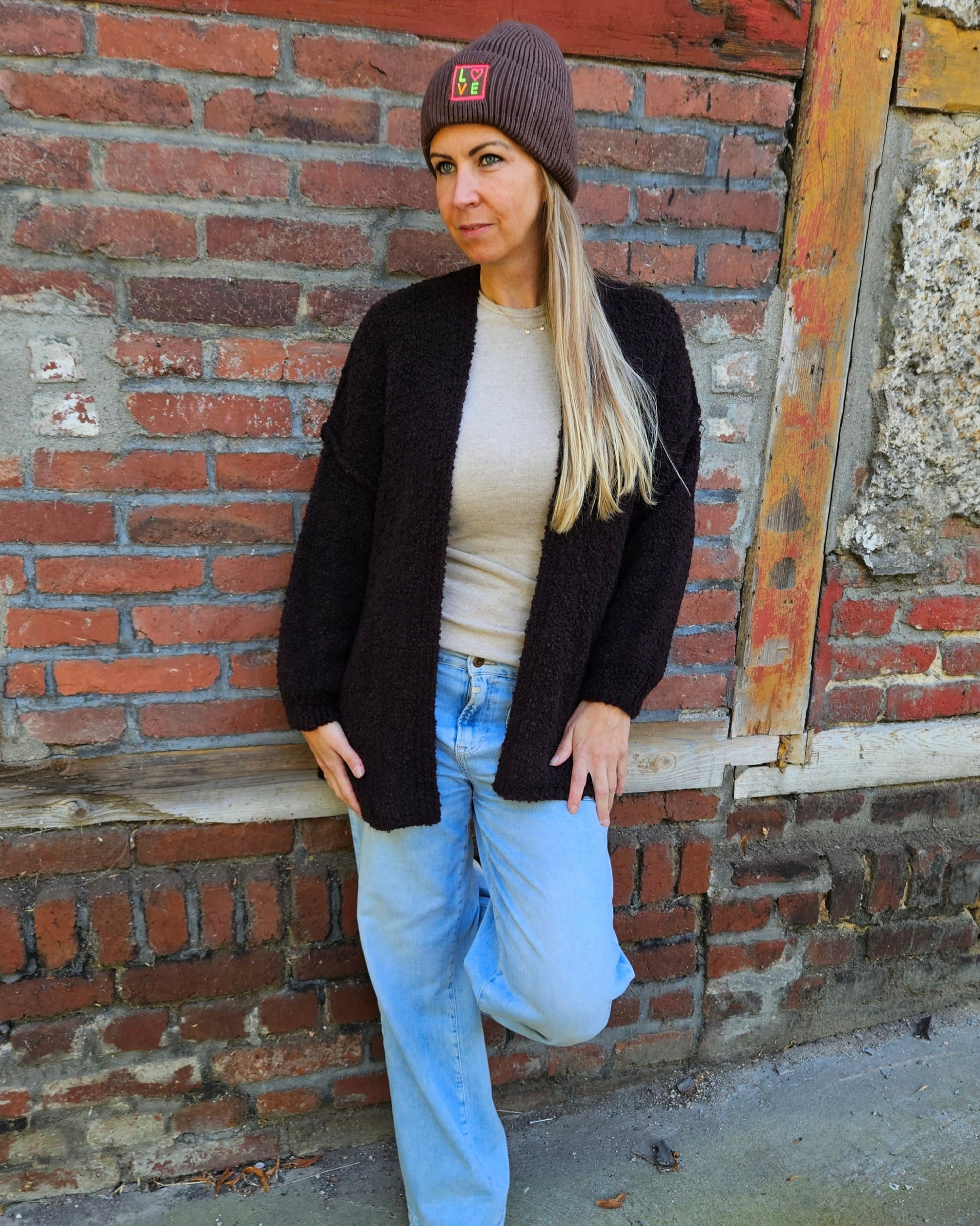 Cozy Strickjacke Dunkelbraun – Grober Strick mit Alpaka & Lana Wolle - One Size