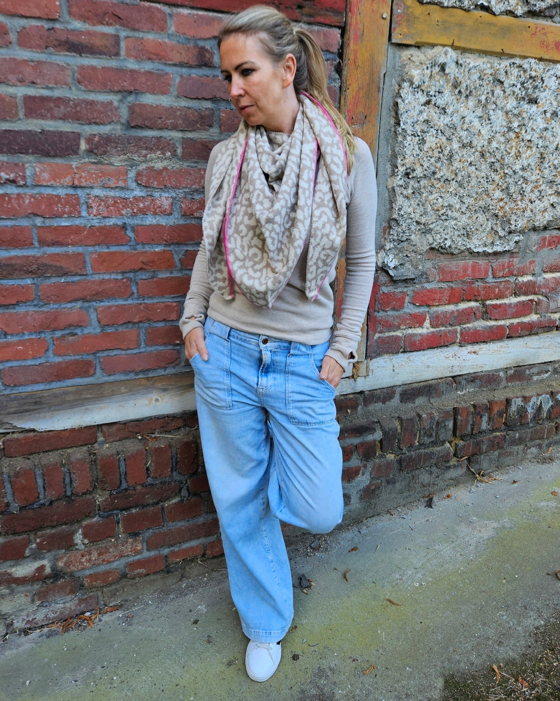 Das Dreieckstuch im Leo Print kombiniert Beige mit einer auffälligen pinken Außennaht – ein echter Hingucker für den Herbst. Aus 100% Viskose gefertigt, ist es angenehm leicht, trotzdem wärmend und perfekt für gemütliche, stylische Outfits mit einem Hauch Farbe.