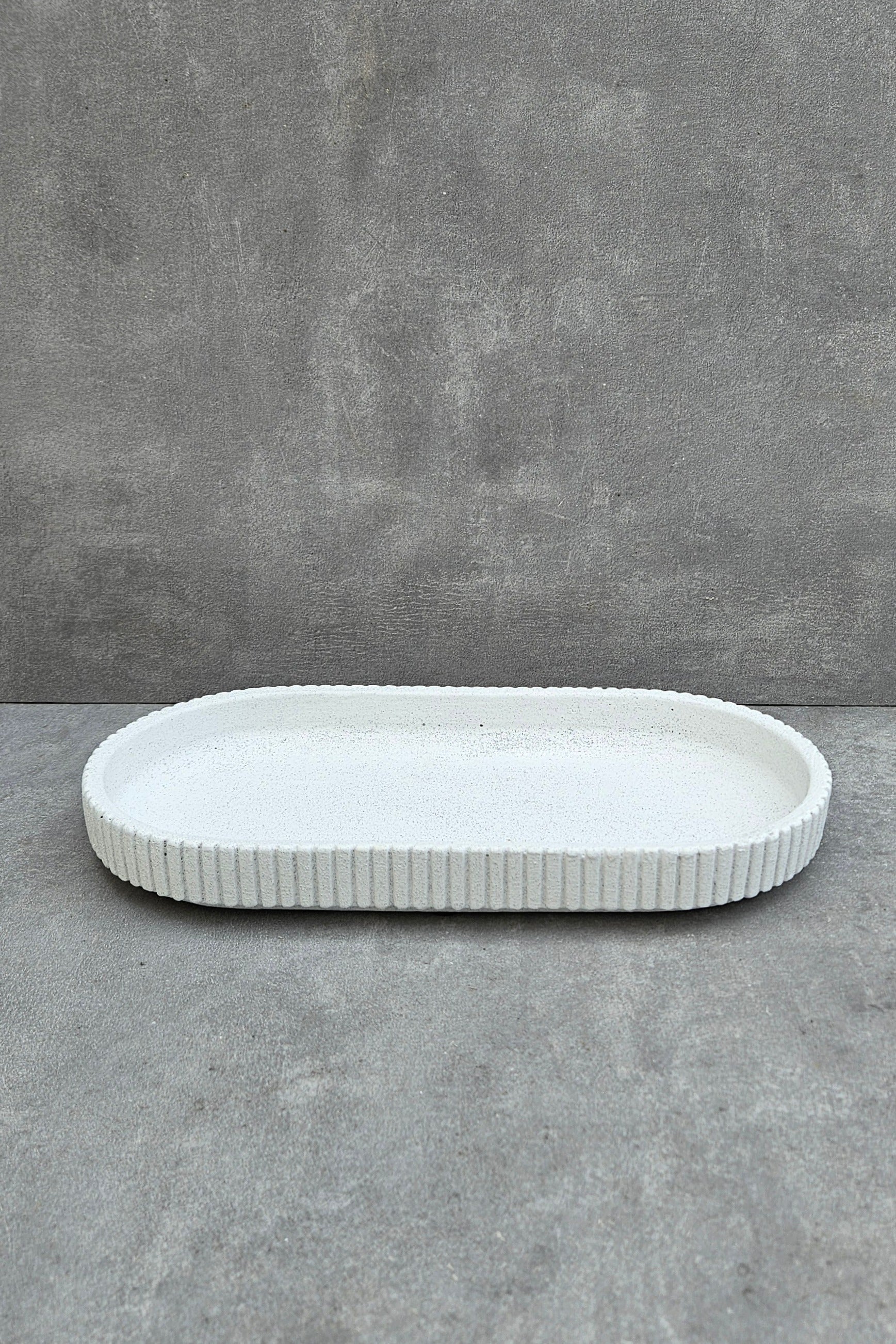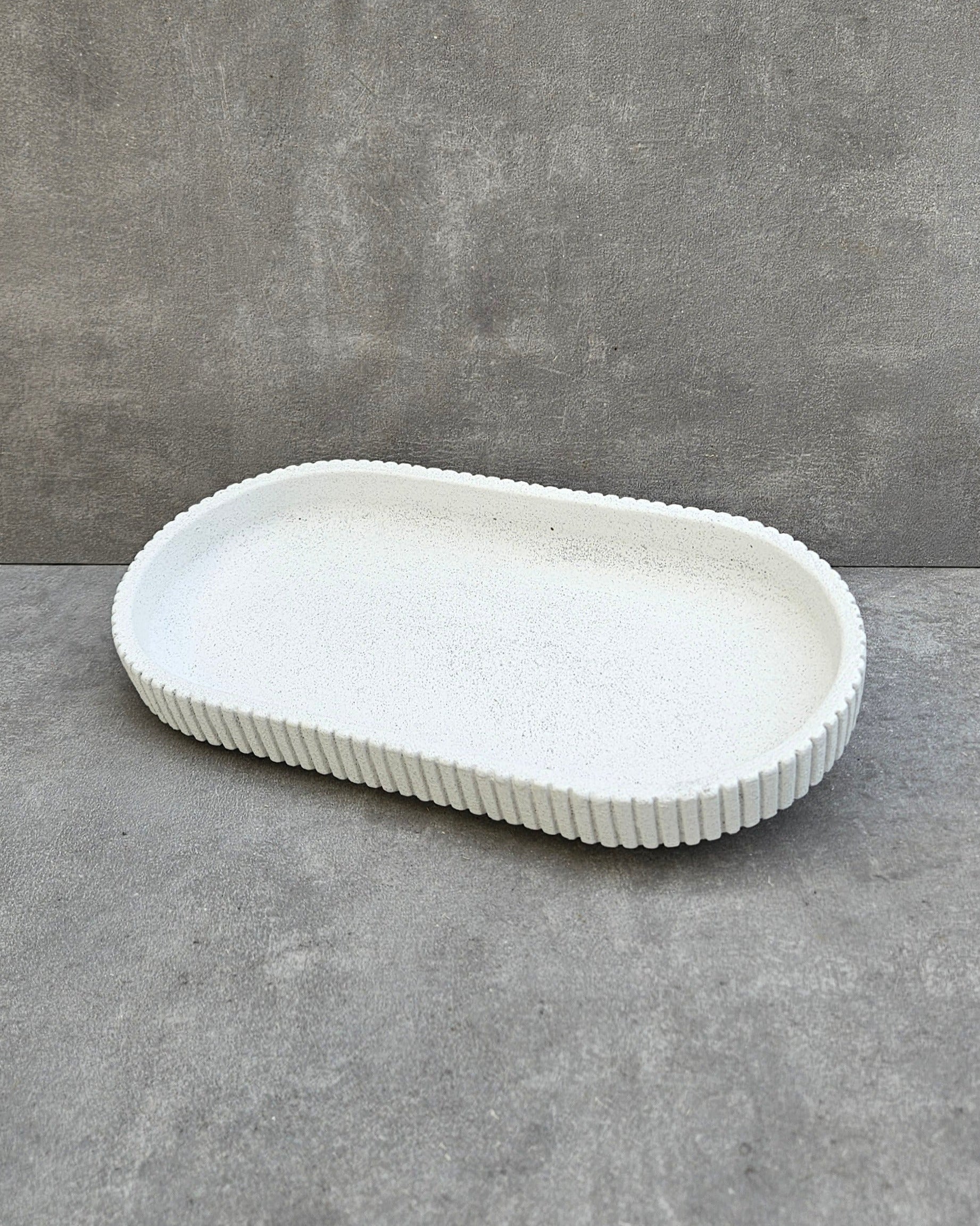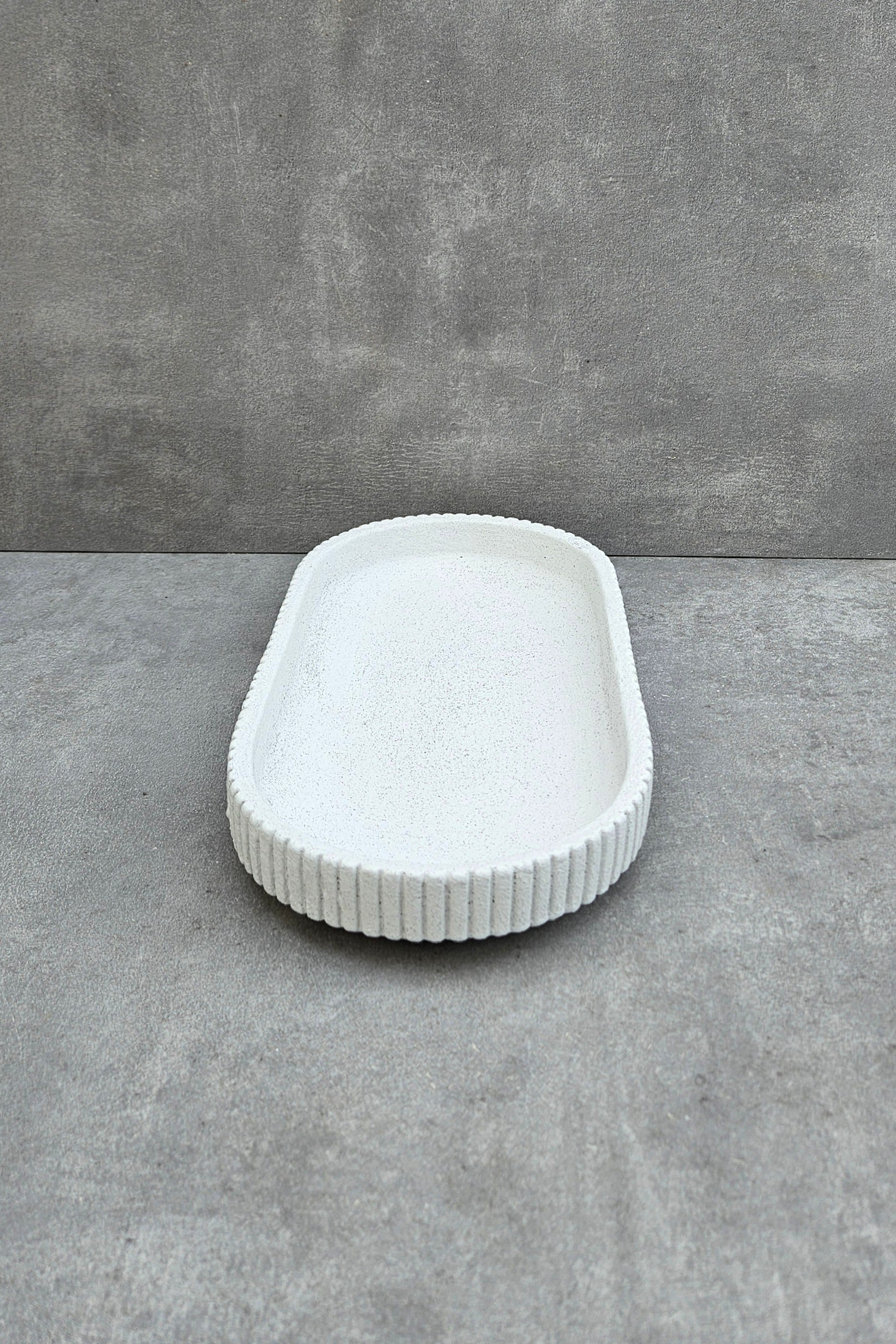 Die ovale, weiße Schale ist mit 35 cm Länge, 18 cm Tiefe und 4 cm Höhe vielseitig nutzbar. Ob als dekorative Schlüsselablage auf dem Garderobenschrank oder zum stilvollen Ordnung halten – ihre dezente Form bringt Struktur und Eleganz in dein Zuhause.