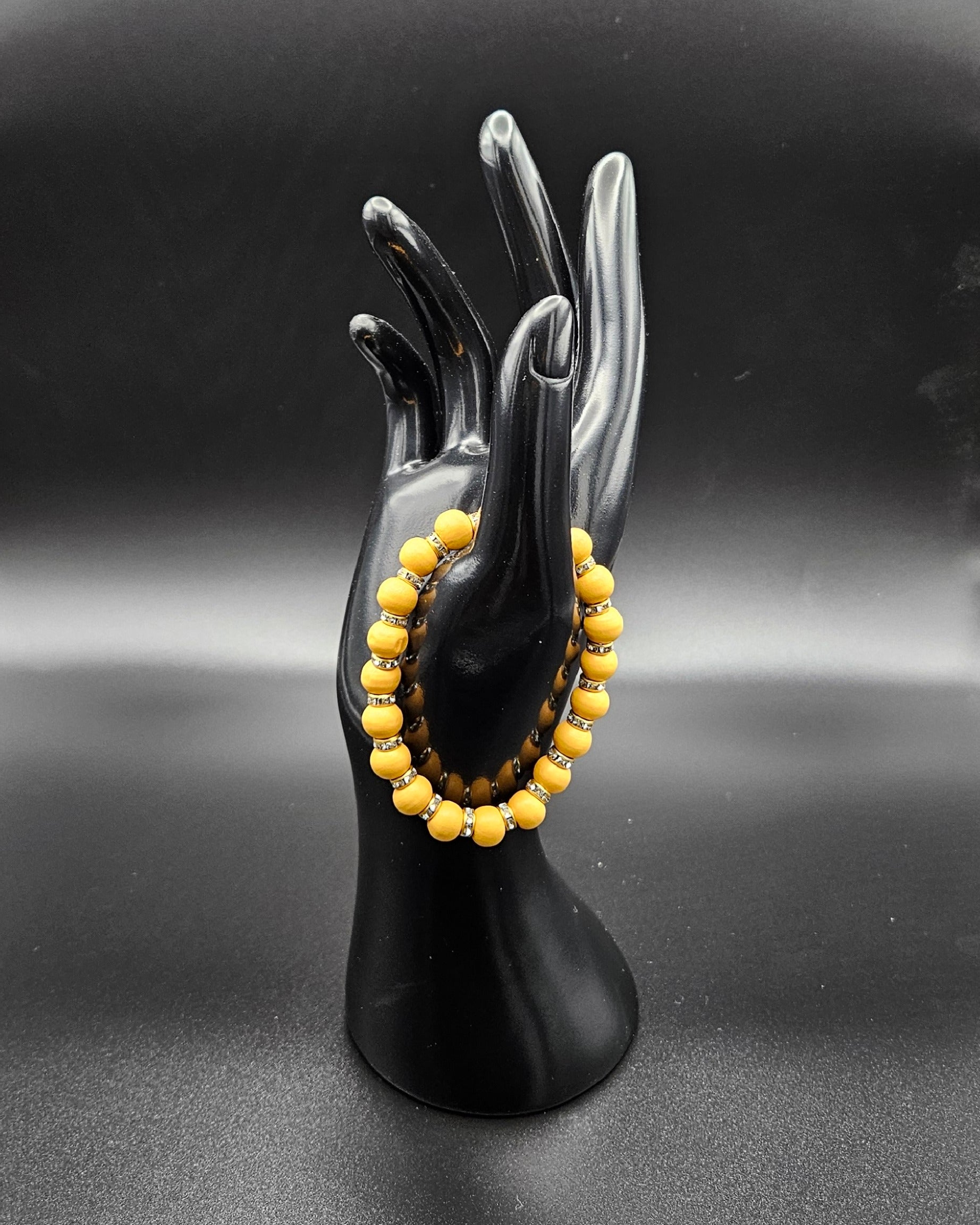Hannah Collection - Armband Safrangelb mit Gold – Hand Made Holzperlen Schmuck ✨