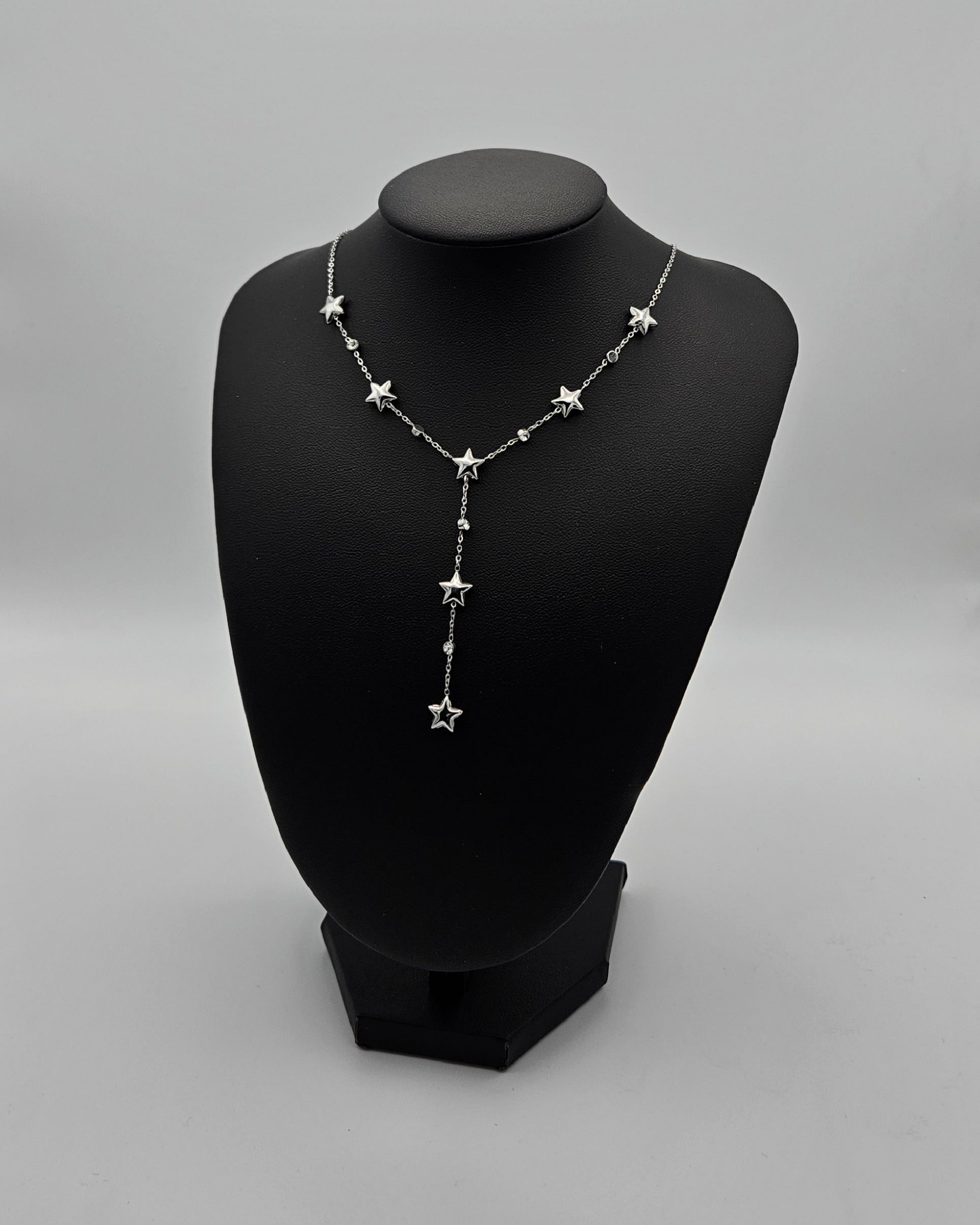 Sternchenkette mit Strasssteinen – Versilberte Edelstahl Damen Halskette
